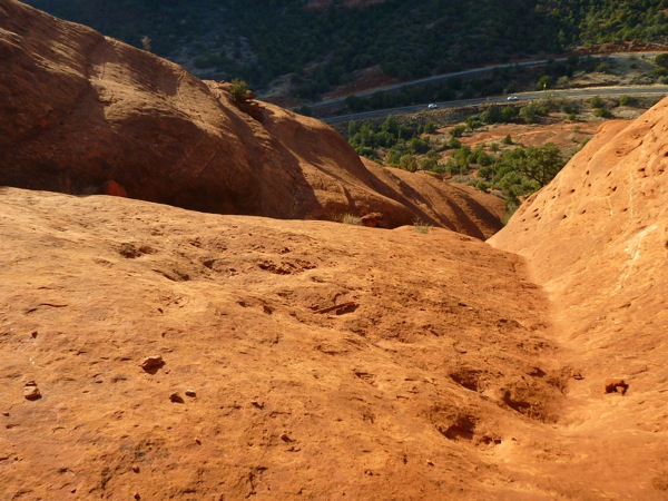 I called the picture hyperventilate. A lot of it was going on while we climbed the lower third of the pictured trail, but we all made it and Andy didn’t need to lift anyone down.