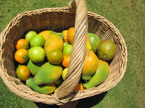 Last week’s Papaya and citrus harvest. 25 pounds (That’s a lot of fruit and as much weight as I lost since January)