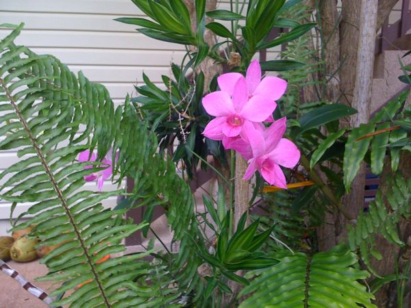 I trimmed back the jungle and Leilani first helped, then took photos and then picked flowers.
