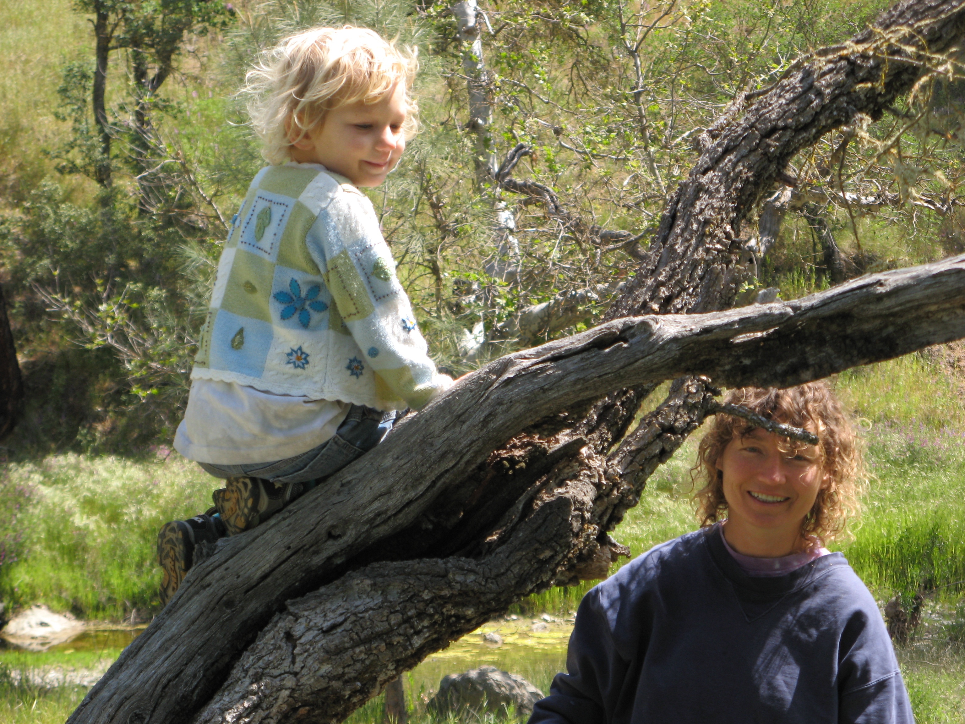 Leilani sang “Dummer kleiner Drache…” (Stupid little dragon) and pretended there was a dragon who was out to get her but couldn’t reach her up on her tree