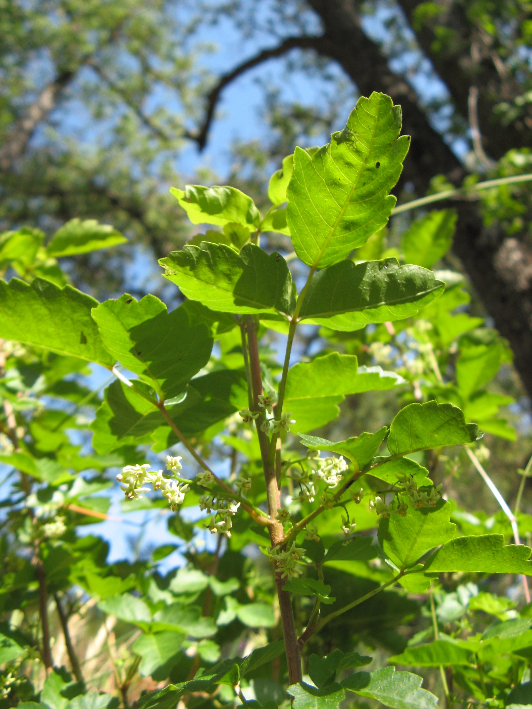 Chinese Houses (Collinsia heterophylla Figwort family) in front of beautiful Poison Oak
