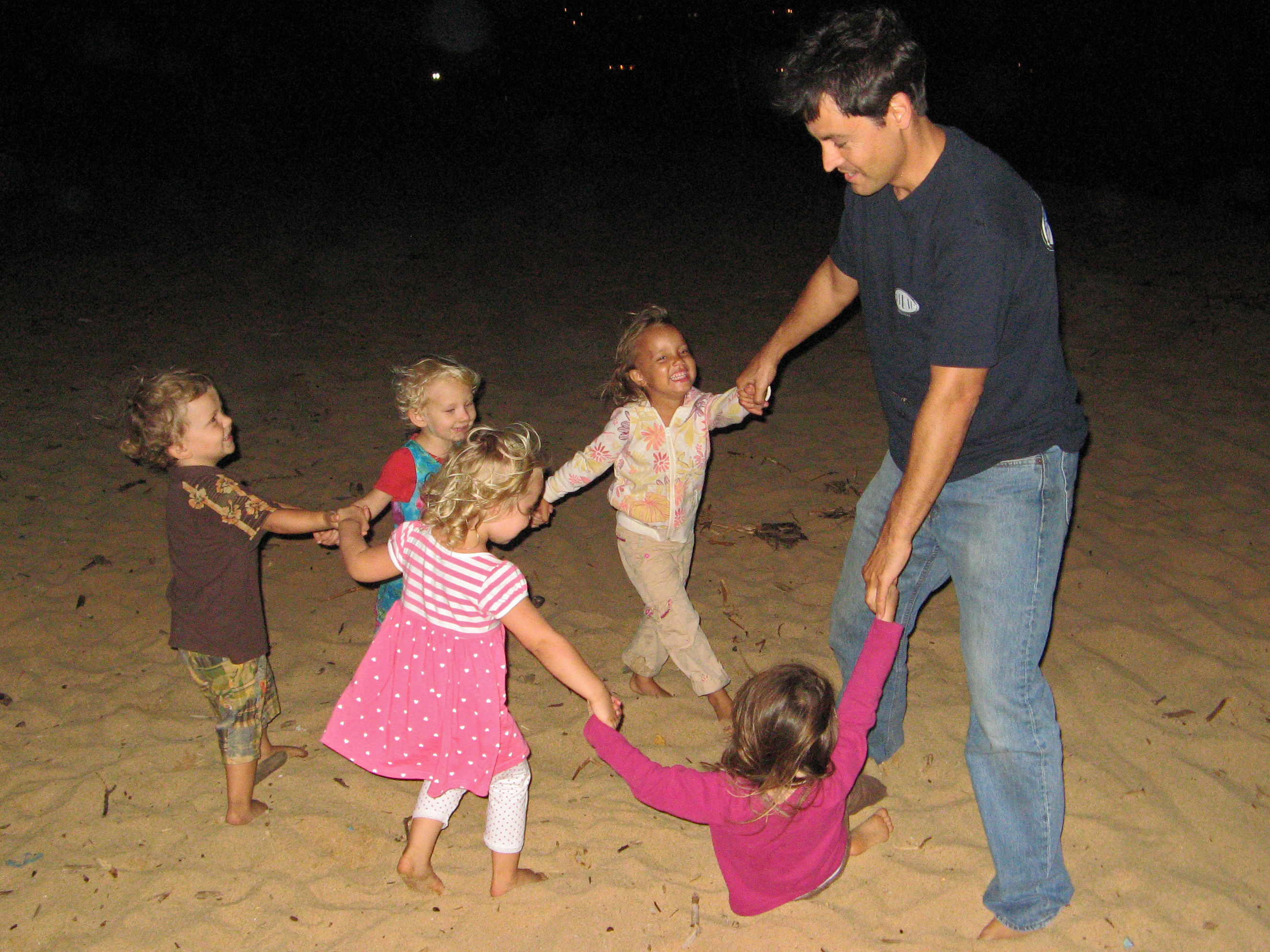 Trude, Inge and Lilith at a campfire (Leilani is afraid of fires, and first played far away with my mom, then with Kiron and then told me she had to go to bed right away, only to ask for book after book to be read later)