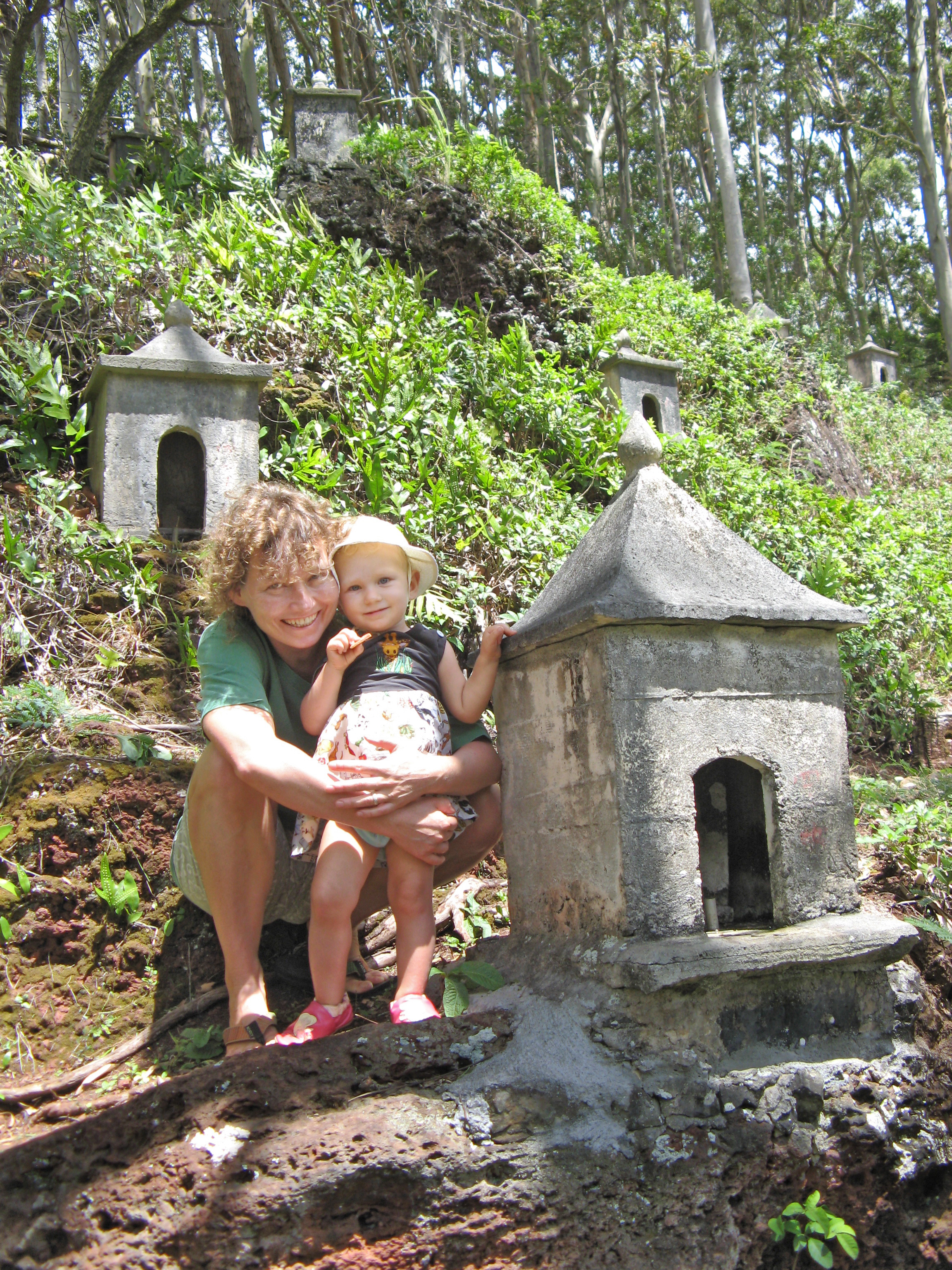 On Sunday, Carey and Raya came to meet us, but we didn’t get to do a hike with them. First the trail had brambles, then it was blocked by fallen branches, then it rained. Instead we went to the Waimea brewpub, and had really greasy (but tasty) snacks. Leilani was extra cranky and also peed while sitting on my lap – which made me extra cranky. We picked up a sick young bird, that we intended to nurse back to health, but it had died by the next day. I lied to Leilani and said it had flown off.