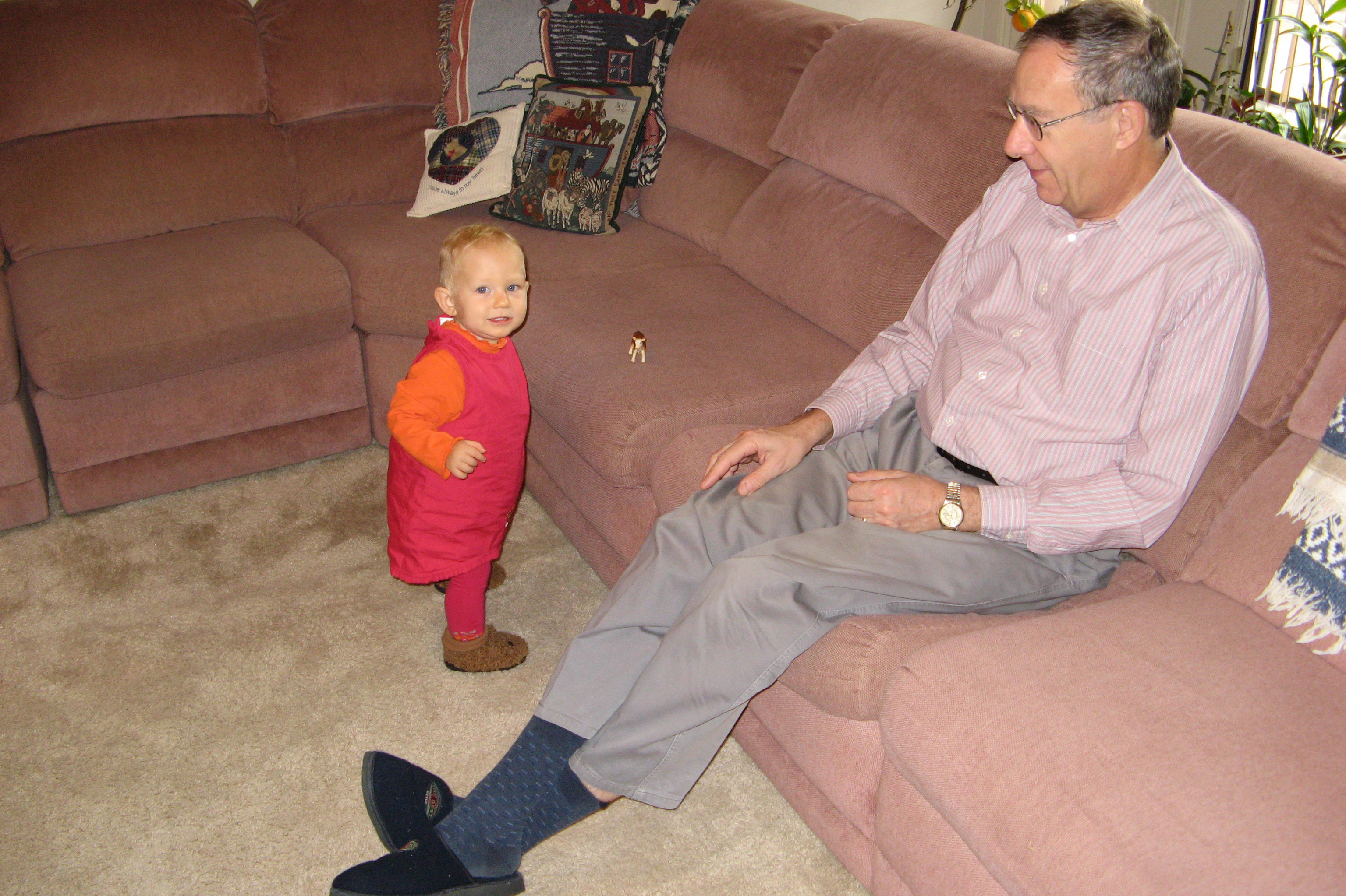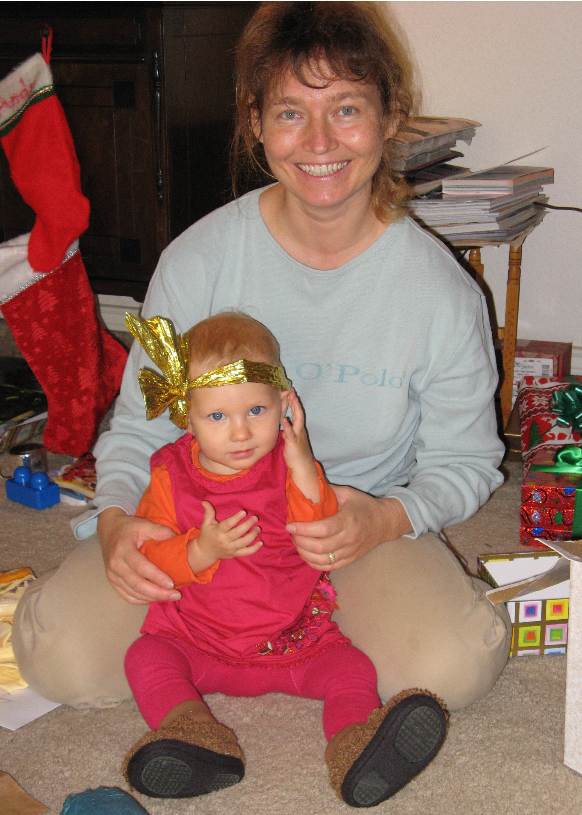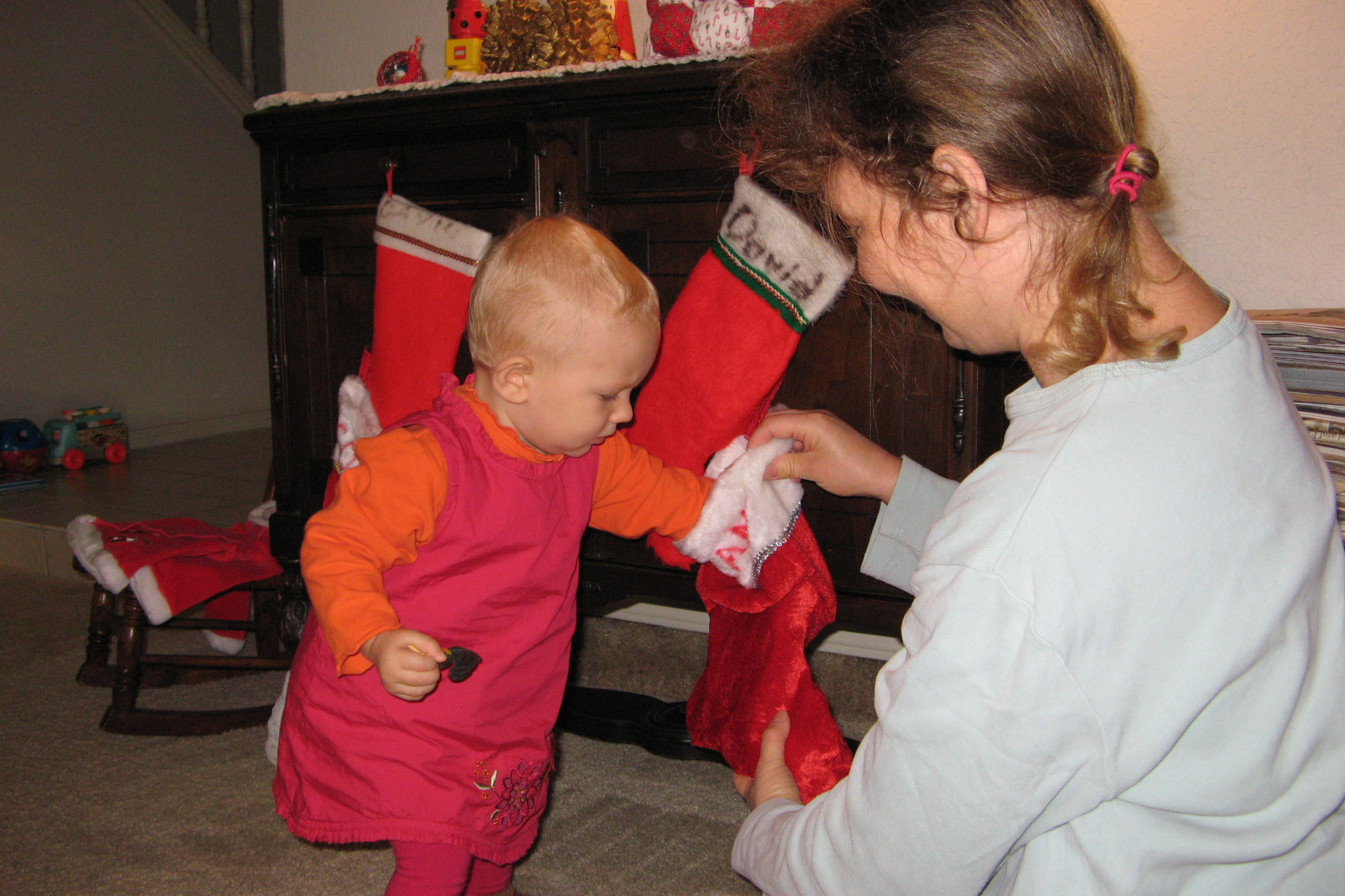 Other recent words are “Buch” (german book) “Sitzi” (german sit), “Momo” (monkey), “Apple” (any remotely round fruit) “Hei-Hei” (german Night-night), “Ducky” “Jesus”, “Sus” (shoes), “leaf”, “Apa” (open), “Moon” and her new favorite “No”. There are also a few new animals sounds, she does the elephant better than I do, and says Mooo for the cow,