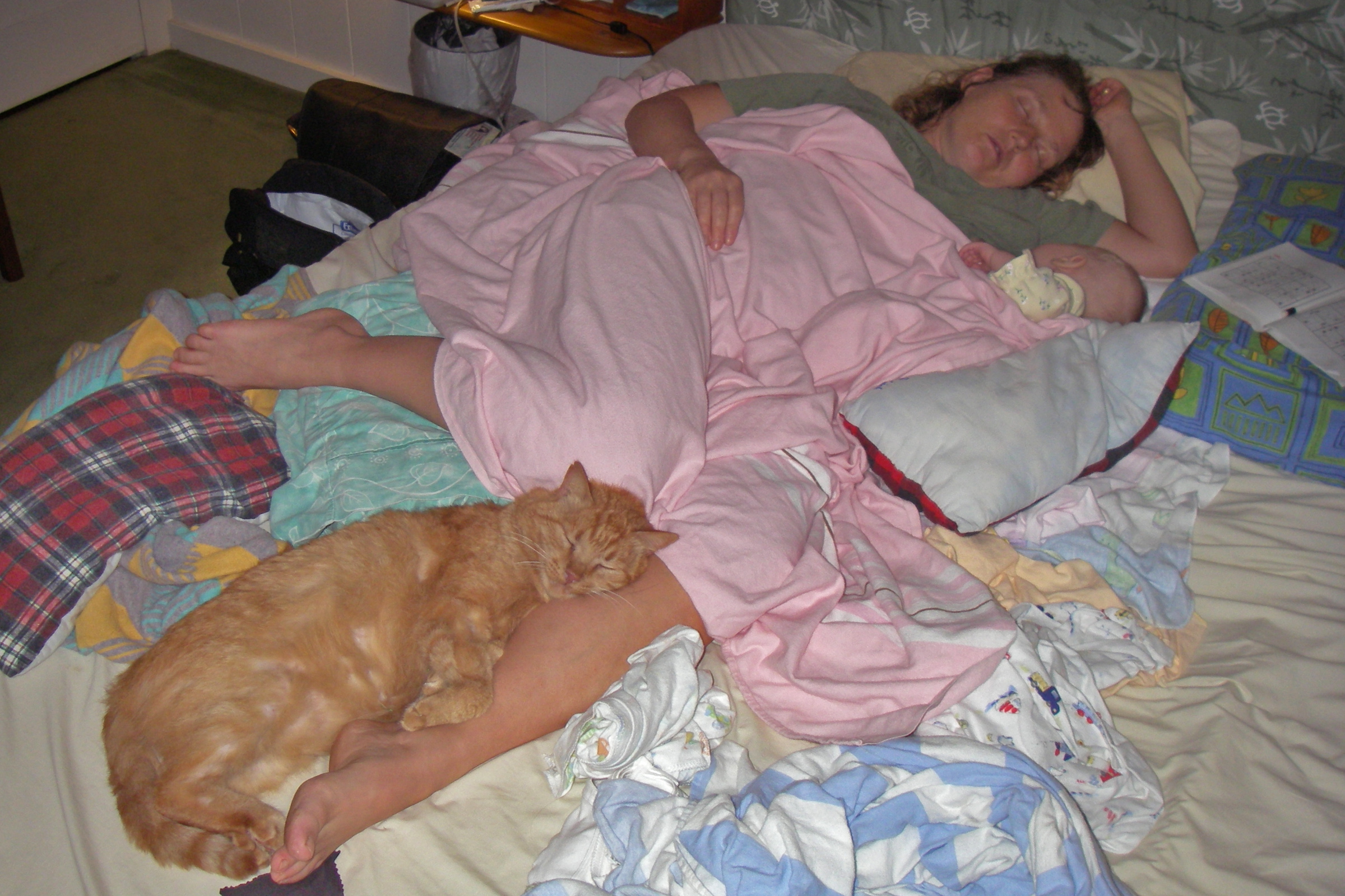 Anyway, she woke me up last night, and it was pitchblack outside. I tried to feed her, but she wasn’t not hungry. She started babbling, and playing with the pillow. I told her – whispering – that the night is for sleeping, and that she must not make sounds, and did not switch on the light. Both times I went back to sleep before she did, while she was playing quietly. The first time she must have fallen back asleep, and slept until morning, but today she played quietly until it got light and woke me up again.
