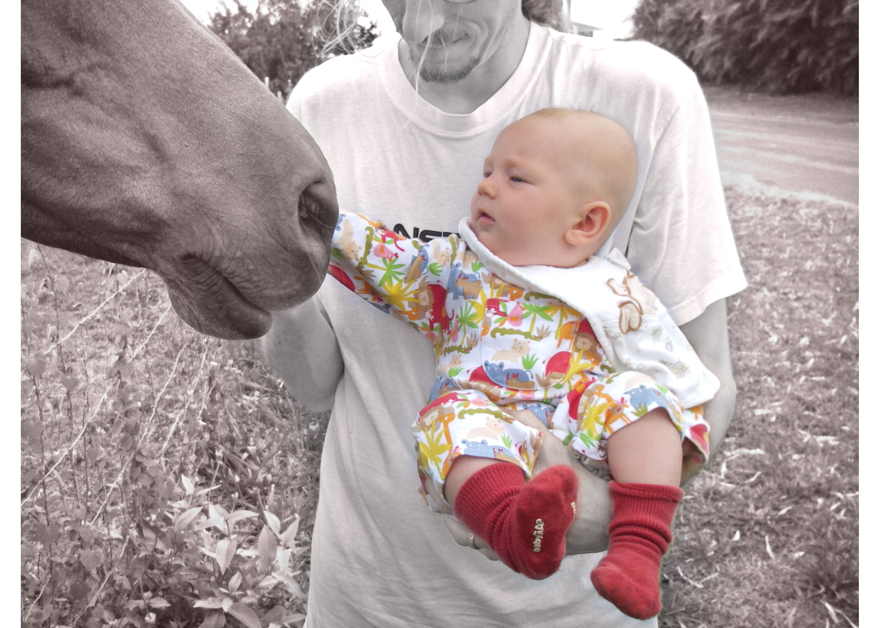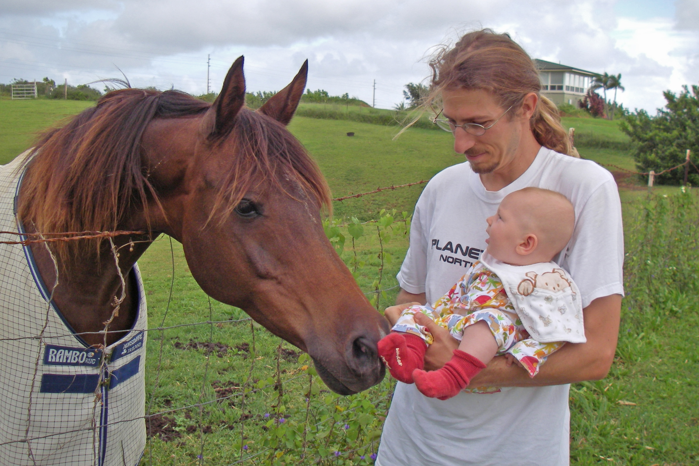 Leilani admires a horse near Larsen’s beach (Wow that’s big…)