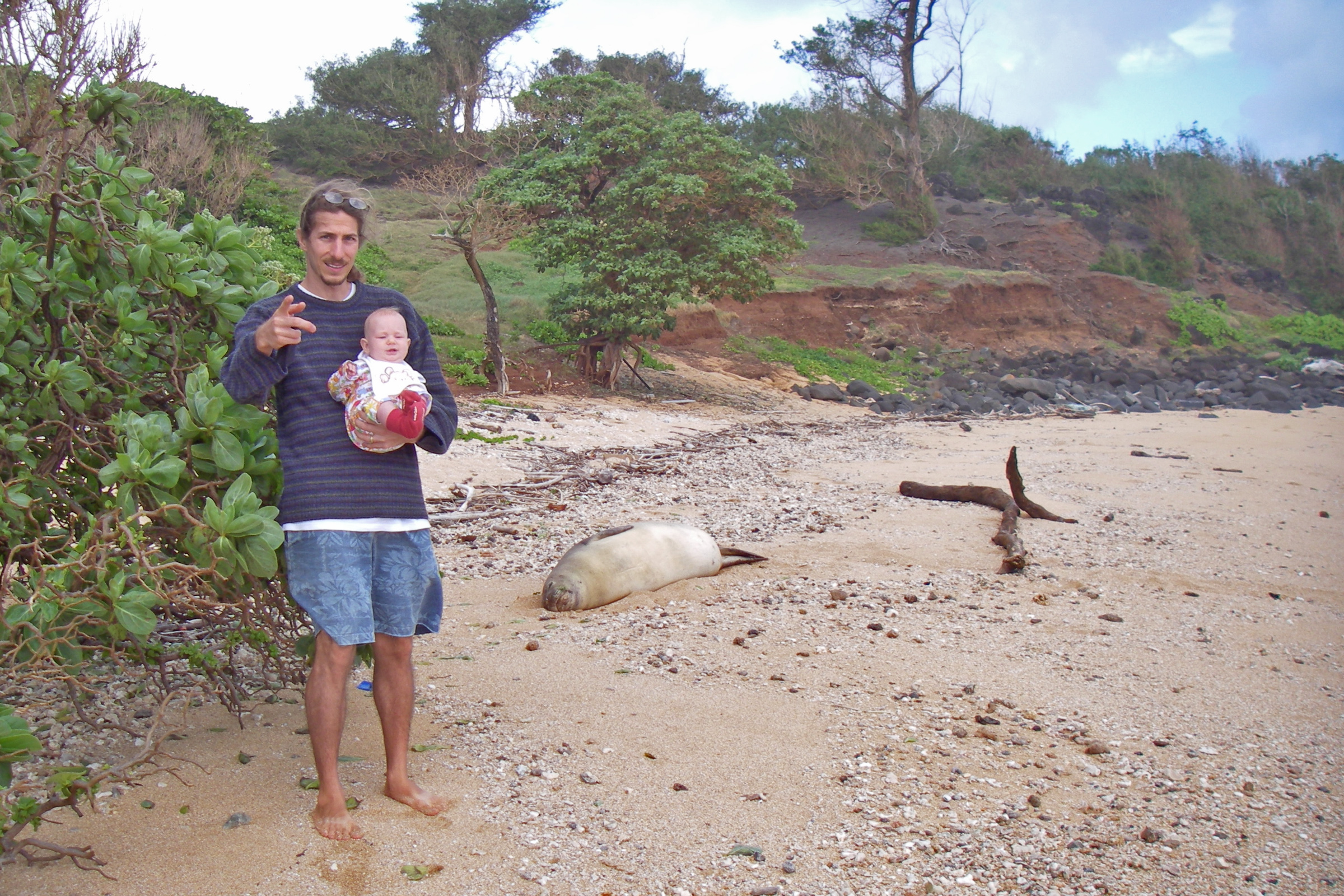 After the road cleanup we went on to explore Larsen’s beach where we saw 2 Monkseals – one of them with a pup (which unfortunately was hiding behind his mom). Leilani took a snooze at the beach, and when it got too hot and sunny at noon we went to Kilauea for pizza, and then on to the lighthouse. Later when it cooled off we went for a swim at Anini, and Andy explored Secrets Beach for a little while.