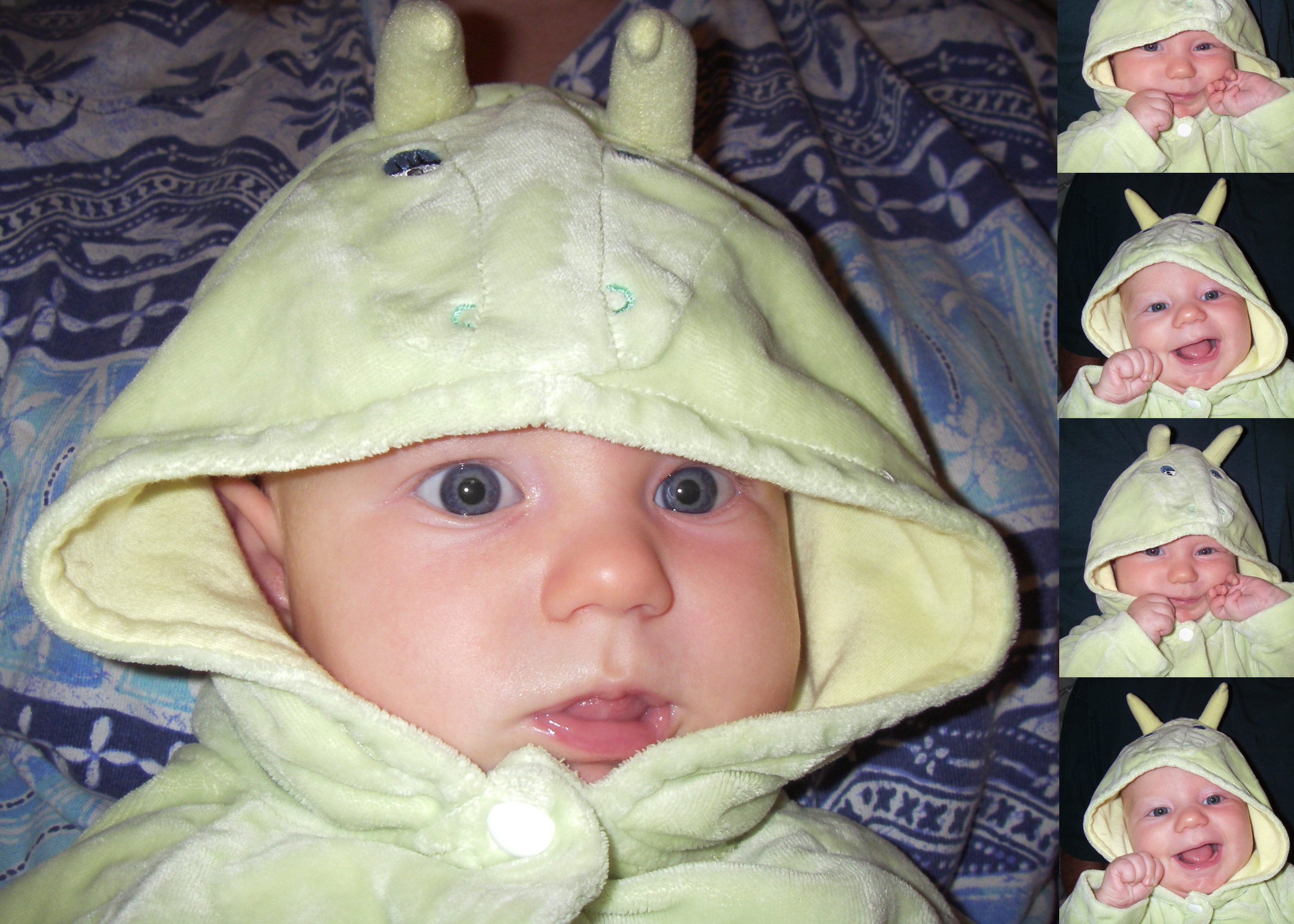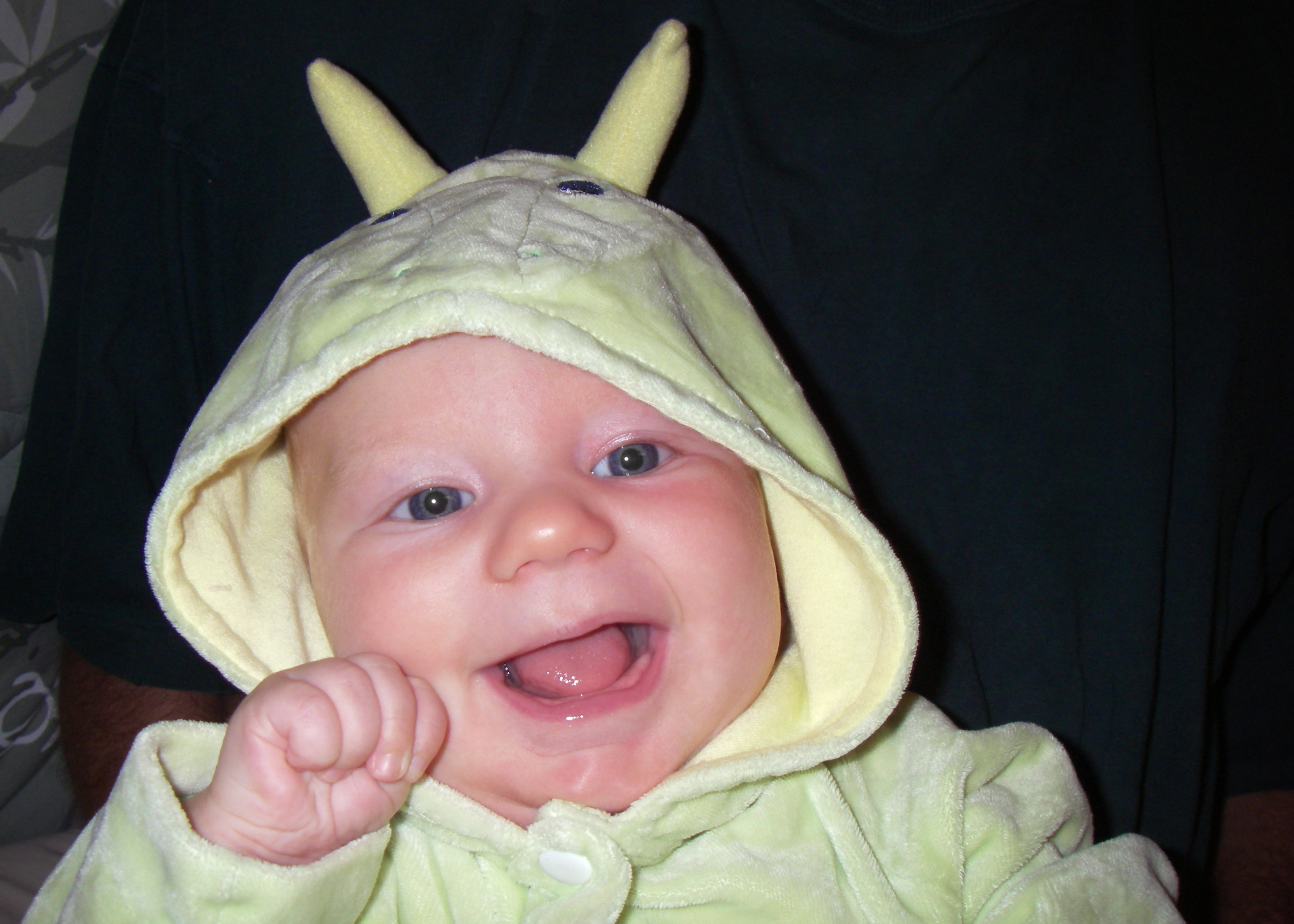 Booboobooboo(…) means “I am upset” most the time and is often mixed with Dldldl. Her voice also gets a very shrill urgent tone if she is upset, and before she really cries there is often a very high pitched sqeaking, that sends parents scrambeling to fix the situation. When she is happy she also produces some pretty shrill sounds, but these have more of a singing quality. Andy learned to say “Nicht quitschen” – “Do not sqeak.”