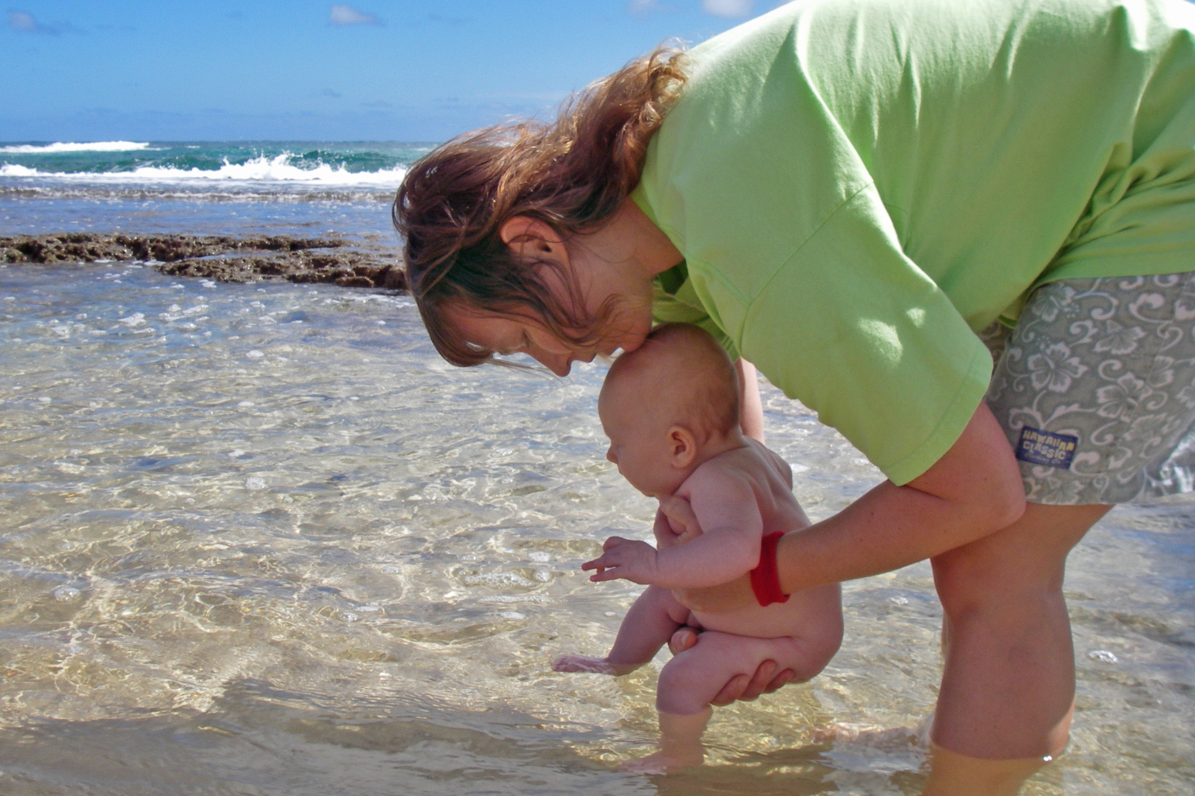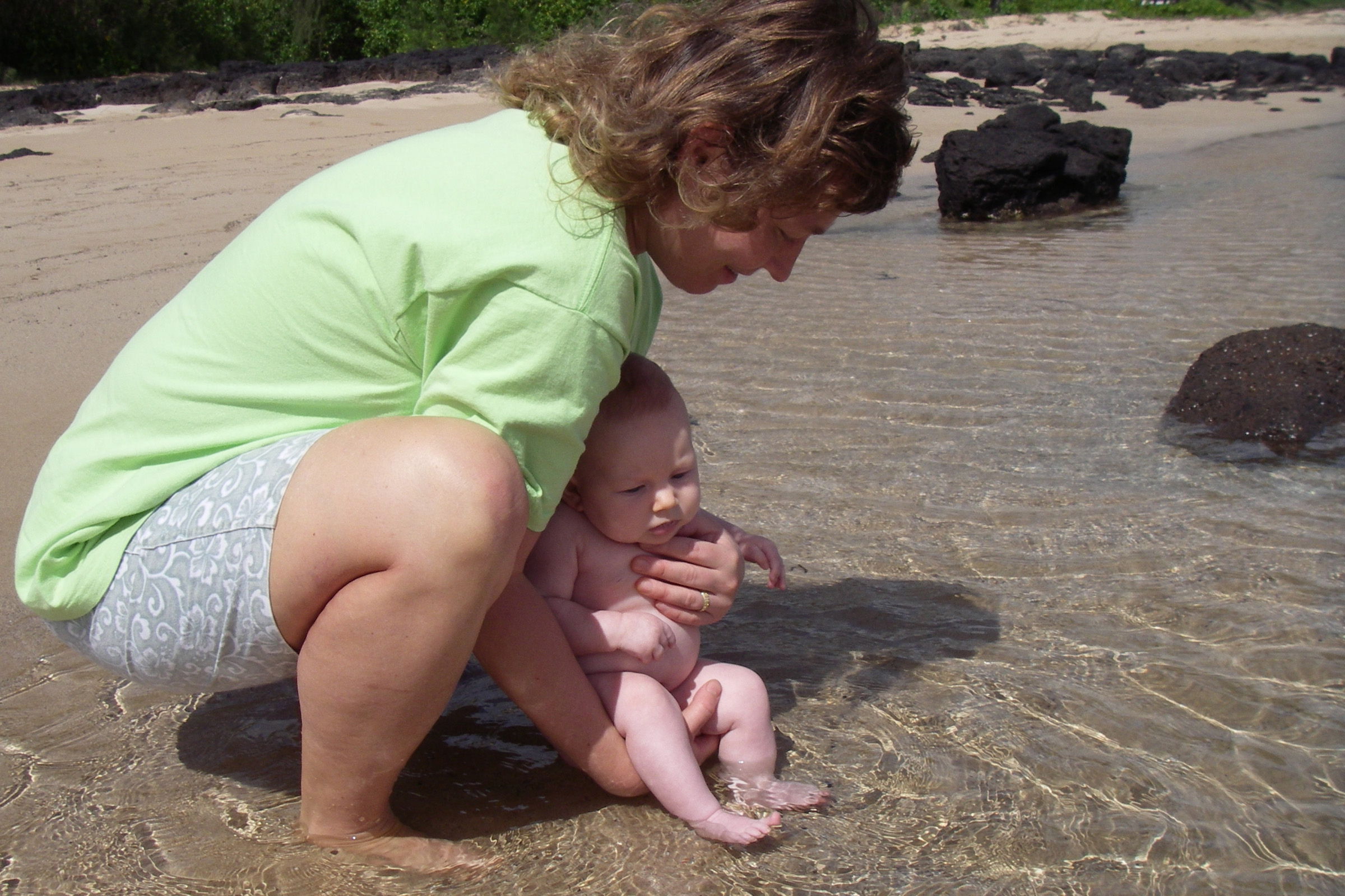 On one on the few sunny days in March we went to Mahaulepu. It was not a very happy day, Andy got a speeding ticket, Leilani cried a lot, and some guy “stole” our nice hidden, shady feeding and diapering spot (put his stuff right next to ours…).