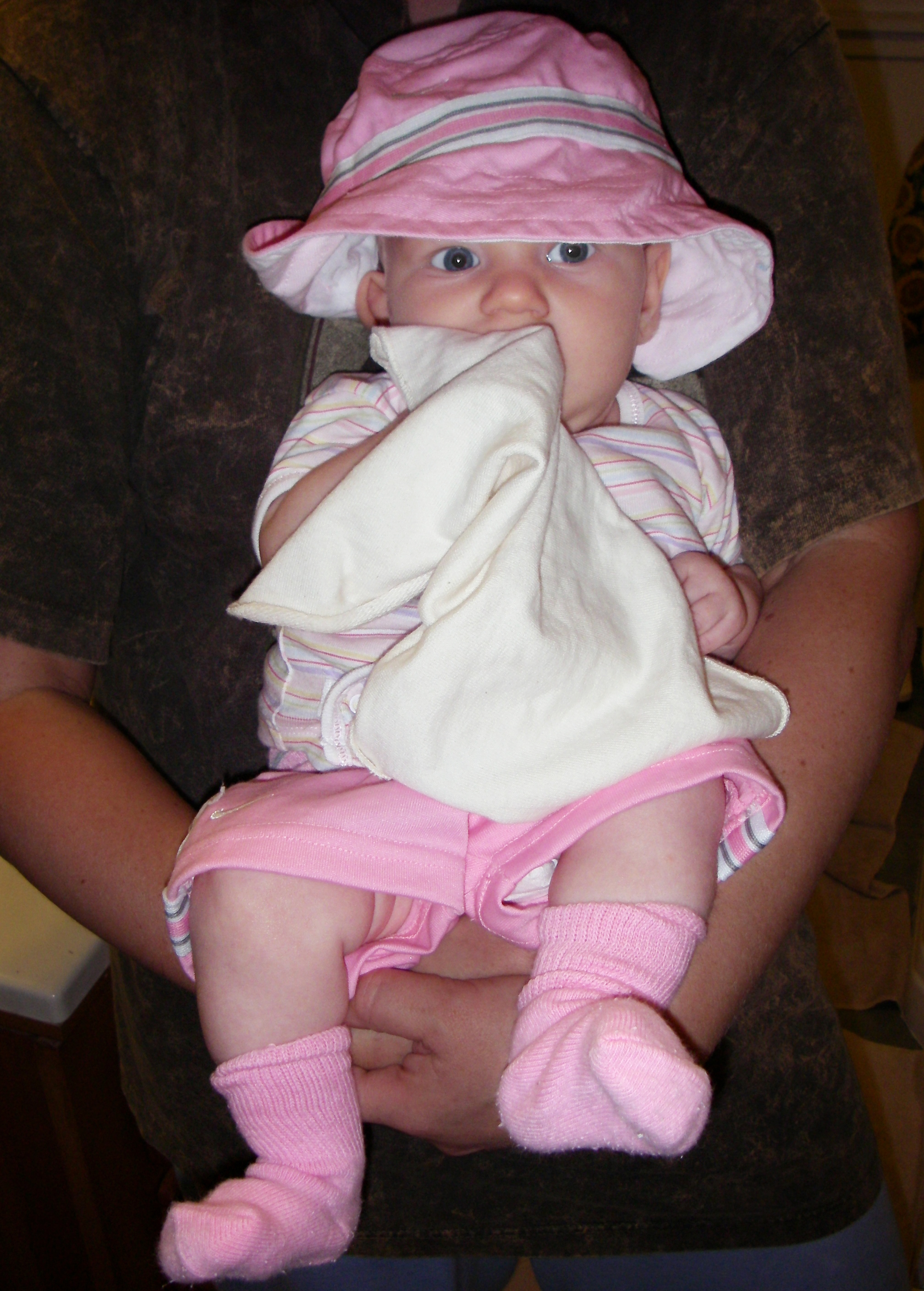 Let me clarify: Leilani does not have a problem with diapers, if she doesn’t have to poop, and she gets enough “Naked Time” (about 2-3 hours a day). She can clearly control (hold back) both pee and poop, and will signal pretty clearly that she has to poop – and then we have enough time to bring her to the diaper table, undress her, put a few layers of paper over the waterproof pad or hold her over a potty (yes we do have photos of baby poop in the potty to prove it :-) but won’t post them) We actually caught 4.8 of the last 5 poops, and the 0.2 were caused by “Oh, she really has to be done now, no baby could poop more…” She has never peed or pooped on me or Andy, if we don’t count diaperleaks.