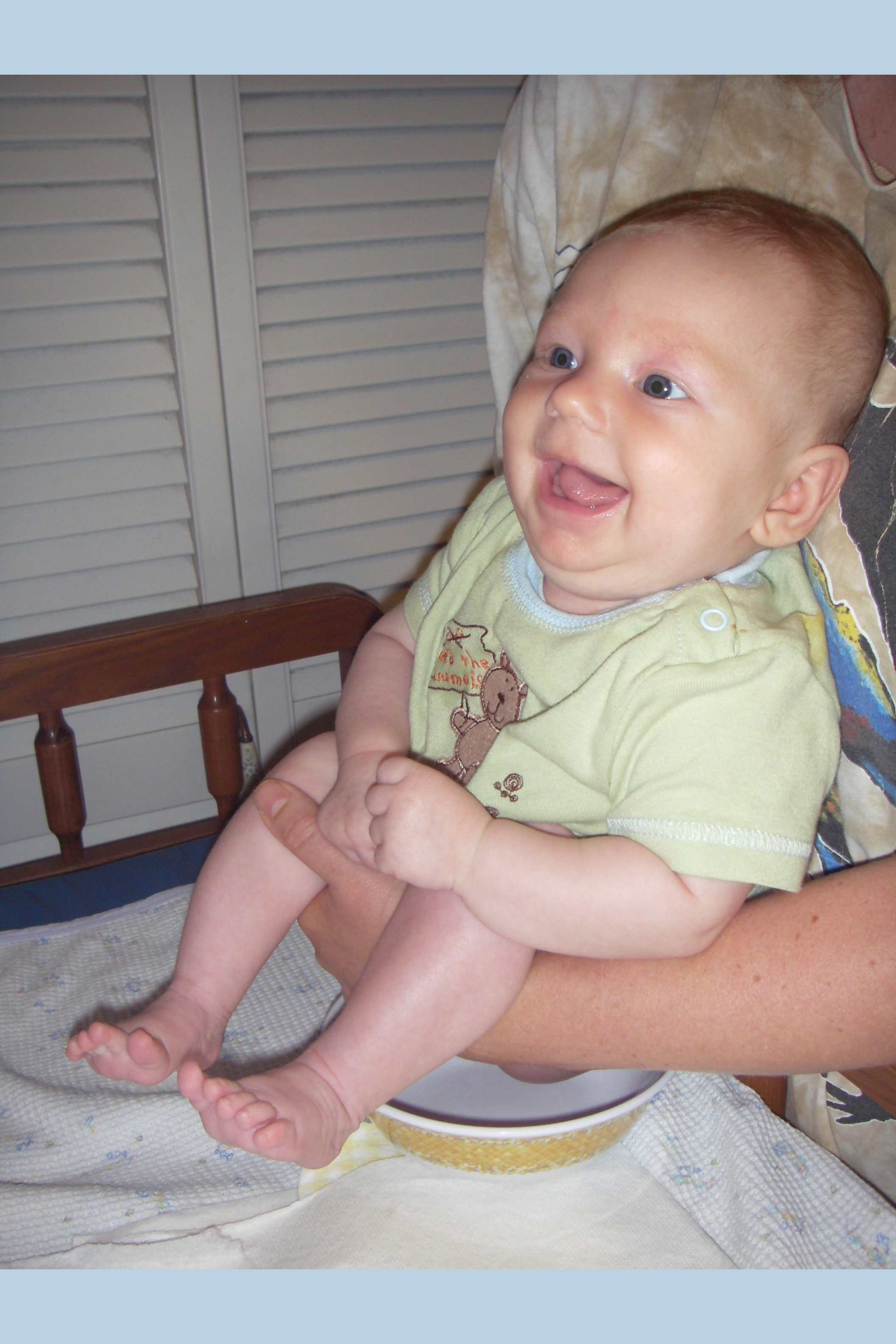 Zur Klarstellung: Leilani hat kein Problem mit Windeln, wenn sie nicht AA muss, und genug “Nackt Zeit” (das ist nicht Andy’s Aussprache von Nachtzeit, sondern Bekleidungs nd Windelfreie Zeit :-D) bekommt. Sie will zirka 2-3 Stunden pro Tag nackt sein. Sie kann ganz klar sowohl pinkeln als auch gacken kontrollieren (zurueckhalten) und signalisiert ganz klar das sie AA muss – und dann haben wir genug Zeit sie zum Wickeltisch zu bringen, auszuziehen, ein paar lagen Kuechenrolle ueber die gummierte Matte zu legen, oder sie ueber’s Topferl zu halten (ja, wir haben Fotos von Babygacke im Topf :-), aber wir werden sie nicht veroeffentlichen) Wir haben tatsaechlich 4,8 der letzten 5 Stuhlgaenge im Topf gefangen – die anderen 0,2 waren ein typischer Fall von “Jetzt muss sie aber fertig sein, soviel gacken kann so ein kleines Baby ja nicht…” Sie hat weder Andy noch mich gemals agepinkelt oder gegackt wenn man die Windellecks nicht mitzaehlt.