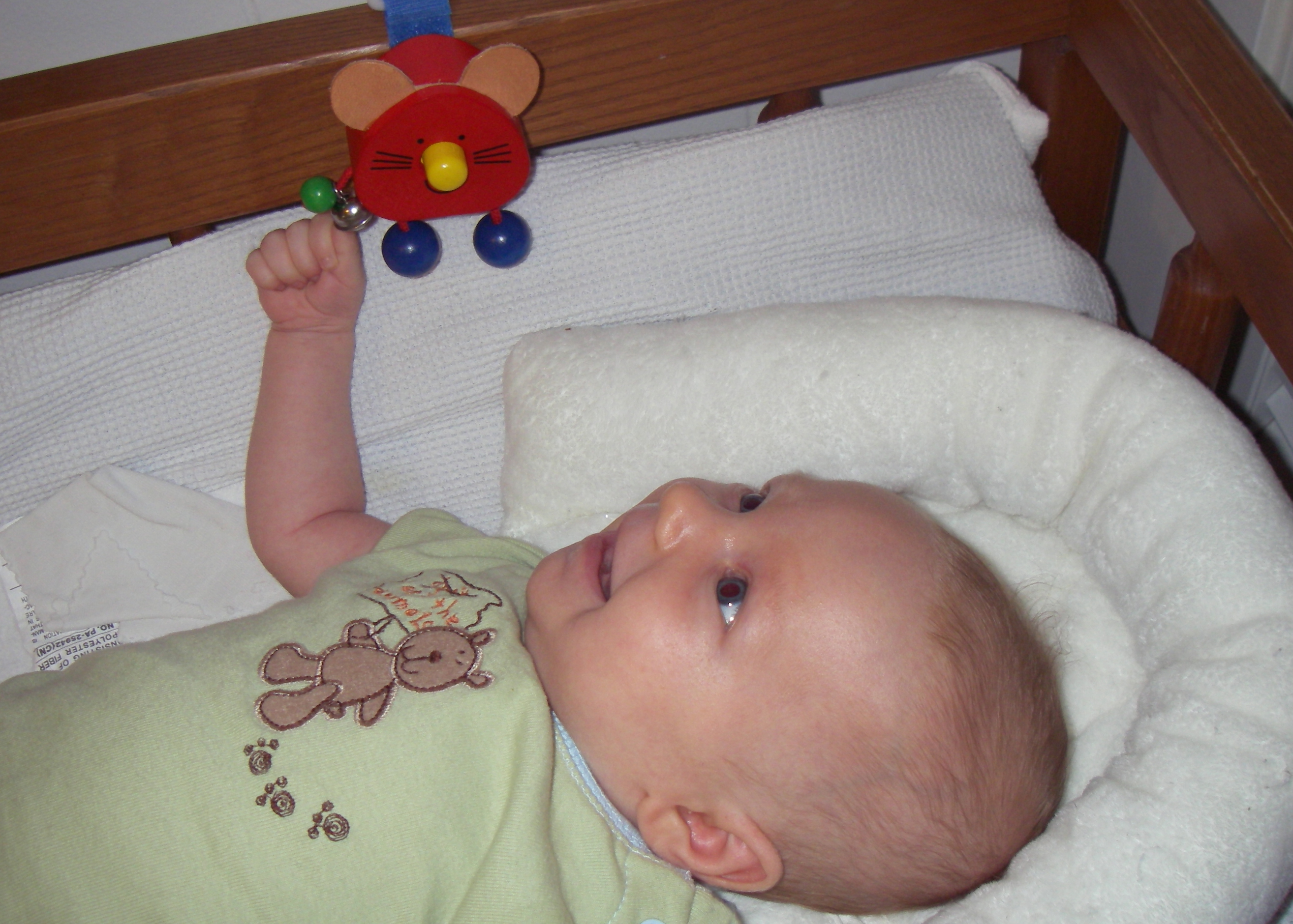 I actually don’t think she “learned” to smile, the dream smiles proves she knew how already. Like sneezing, coughing, and yawning, smiling seems to be an innate reflex. But through Mommy’s playing and patience, Leilani now actively smiles, in response to our smiles. I think this is also the first time she really reacts to us on the conscious level.