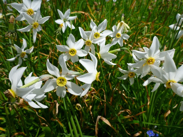 The star shaped narcissi (narcissus radiiflorus) belong to a large group of different species of narscissus and are native to Austria in the areas of Styria, Lower- Austria, Upper- Austria and Carinthia. They are particularly prevalent in Ausseerland, due to the ideal climate and nutrients in the land. They can tolerate or relatively dry locations. The bulbs are in bloom between the middle of May and the middle of June depending on the altitude. Sadly, increased fertilization of the meadows and earlier mowing has decreased the paperwhite meadows, and the flowers on the remaining meadows. The one we found was too steep to mow, and used only for grazing (and the cows obviously don’t like the narcissi).